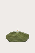 The Caldera Clutch is a striking sculptural piece crafted from marbled green acrylic with an architectural silhouette. Defined by its distinctive dented surface and stable flat bottom, this clutch commands attention as both functional accessory and wearable art. The polished gold hardware clasp adds refined elegance, securing your essentials while complementing the piece's modern aesthetic. A statement clutch for those who appreciate design with substance.