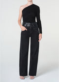 The Elson Jean redefines casual elegance with its relaxed straight-leg silhouette and distinctive double-waisted recycled leather detail set against deep black denim. Constructed from weightless regenerative cotton, this non-stretch piece delivers an effortlessly lived-in softness without sacrificing structure. Subtle marbling throughout adds understated character, making it the perfect foundation for pairing with everything from fitted basics to oversized knits. A versatile wardrobe essential that balances comfort with refined style.