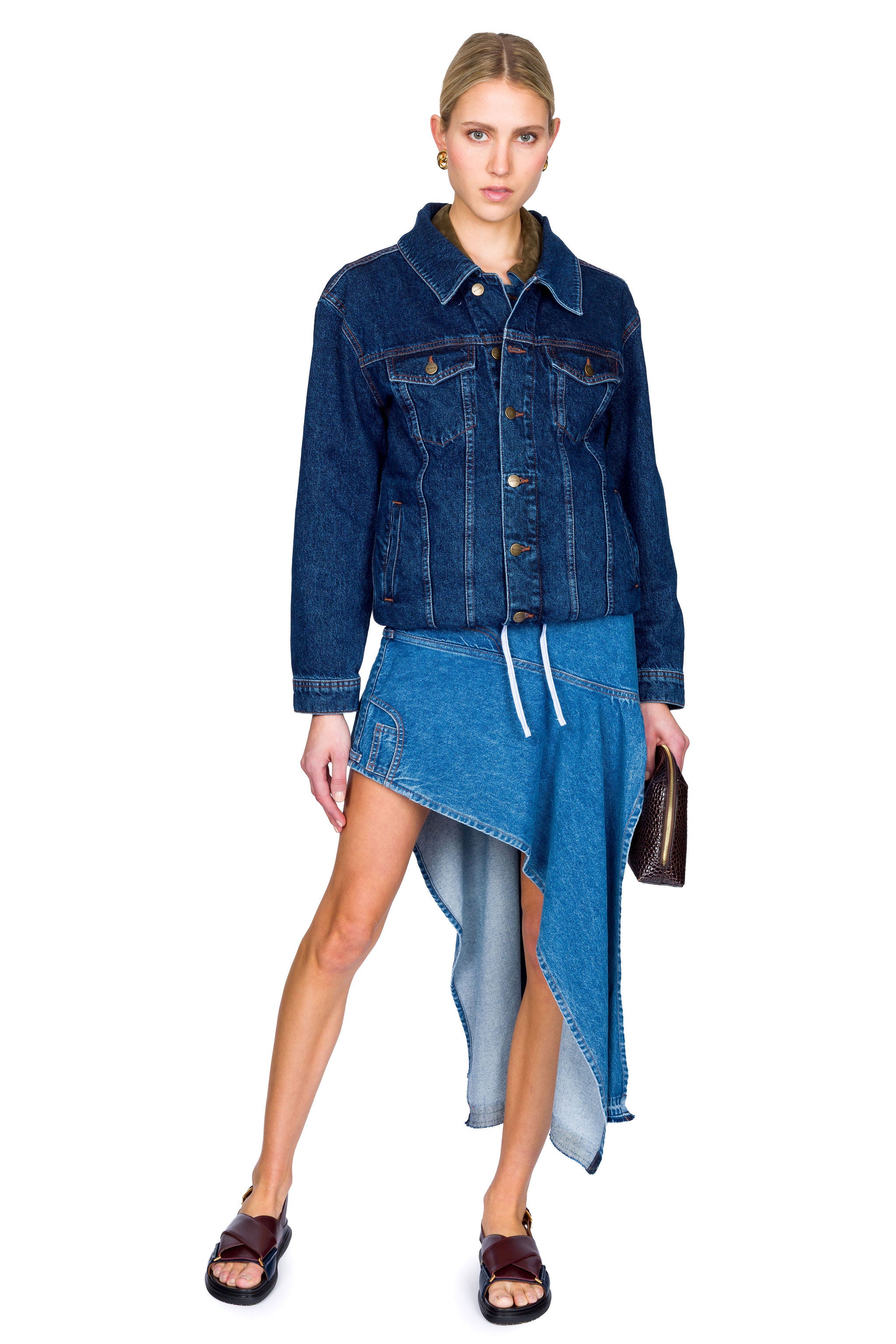 Reimagine classic denim with this Loop Hem Doubled Jacket, where tailored utility meets contemporary design. A contrast collar and deconstructed proportions subvert the traditional trucker silhouette, creating a piece that balances structure with modern ease. Perfect for layering or wearing as a statement piece, this jacket delivers both versatility and refined edge.
