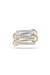 The Leyla is composed of 5 linked rings in 18k yellow gold and .925 sterling silver with pavé white diamonds and 18k yellow gold connectors.
