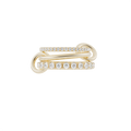 The Norah ring blends elegance and artistry with two radiant 18k yellow gold bands, each pavé-set with vibrant sapphires surrounding a solid gold center. Connected by polished 18k yellow gold links, it offers a versatile design perfect for stacking or styling across multiple fingers. Handcrafted with care in Los Angeles, this piece embodies refined sophistication and timeless beauty.