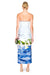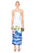 Drift into effortless elegance with this premium linen maxi dress, featuring an exclusive nautical placement print that captures the romance of the open sea. The strapless silhouette showcases a boned bust for refined support, while subtle striped contrast binding adds a touch of seaside charm. A fitted cut flatters the figure, anchored by an invisible back zip and a graceful center split for movement.