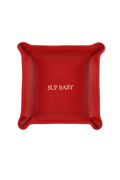 Elevate your organization game with our custom Red Sup Baby Medium Valet Tray. Handcrafted with genuine leather, this catchall tray is bendable for versatile use. Keep your essentials in one place, whether it's on your nightstand, desk, or while traveling. The perfect gift for someone special.