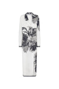 Elevate your wardrobe with this refined long-sleeve midi dress, featuring a crisp white base and striking black palm tree print. The structured collar adds polished sophistication, while the midi length offers timeless elegance for both casual and dressed-up occasions. Perfect for layering or wearing solo, this piece seamlessly transitions from day to evening with understated style.