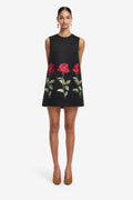Yvonne Embroidered Mini Dress features intricate embroidery and a flattering A-line silhouette. The classic round neckline and invisible back zip create a polished, elegant look. Fully lined for comfort, this dress transitions seamlessly from evening events to upscale occasions.