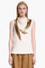 The Arlie Top combines understated elegance with distinctive design details. This sleeveless piece features a graceful draped mock neck that creates a refined silhouette, while a back zipper closure adds modern functionality. A striking goose print at the shoulders provides an unexpected focal point, elevating this versatile top from everyday essential to statement piece. Perfect for layering or wearing solo, the Arlie Top brings sophisticated style to any wardrobe.