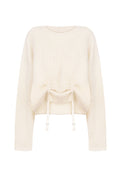 The Cleo Sweater combines timeless elegance with unexpected detail. This ivory knit features a refined silhouette enhanced by distinctive suspender straps that cinch gracefully at the midsection, creating an unexpected look. A versatile wardrobe essential that transitions effortlessly from casual to polished occasions, the Cleo offers understated sophistication with a modern twist.