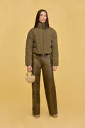 The Ingrim Jacket reimagines the classic puffer with contemporary flair. This cropped silhouette features striking geometric cording that adds visual dimension, while functional pockets deliver practical elegance. The rounded hem softens the structured design, creating a refined balance between modern edge and wearable comfort. Crafted from cotton, it's an essential layer for those who appreciate thoughtful design details.