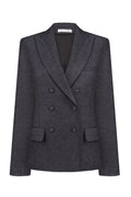 The Nova Blazer redefines tailored elegance with its refined grey double-breasted silhouette, elevated by a striking oversized white bow detail positioned at the back. This accent creates dimensional shape, transforming a classic blazer into a statement piece. Perfect for those who appreciate understated luxury with an unexpected twist, it seamlessly transitions from boardroom to evening occasions.