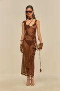 Introducing the Pemma Knit Dress, where artisanal craftsmanship meets contemporary style. Each piece features hand-crocheted floral elements and ornate flowered cord detailing, creating a sophisticated silhouette. The midi length offers timeless versatility, while delicate petal accents add dimension and visual interest. Includes a coordinating slip for seamless wear. A refined choice for those who value handmade artistry and botanical elegance.