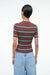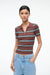 The Ren Top is a tailored knit polo that combines timeless style with everyday versatility. Its classic redondo stripe pattern adds visual interest while maintaining a refined aesthetic. Short sleeves and a fitted silhouette create a polished look that works beautifully layered under jackets or worn on its own. Perfect for transitional seasons and effortless styling.