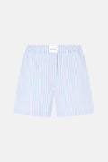 Tailored boxer shorts crafted from premium blue striped cotton and expertly made in Italy. These refined essentials combine timeless style with superior comfort, featuring a classic pattern that transitions seamlessly from everyday wear to loungewear. The breathable cotton construction ensures all-day ease, while Italian craftsmanship guarantees lasting quality and a polished fit.