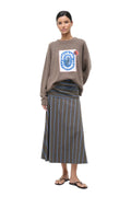 A-line silhouette meets modern edge with this mid-rise skirt. Crafted from printed stretch poplin, it features strategic ruching at the waist for a flattering, sculpted fit. The Huntington Stripe print adds visual interest to an everyday essential that moves with you.
