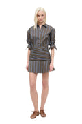 The Indya Mini Dress combines effortless elegance with flattering structure. Crafted from crisp white stretch poplin, this shirtdress features a defined silhouette shaped by a ruched waistband that cinches at just the right spot. Long sleeves provide versatile coverage, making it perfect for layering or wearing solo across seasons. Whether dressed up with heels or down with sneakers, this piece transitions seamlessly from day to night.