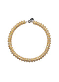 Elevate your style with the Axel Necklace, featuring 18-carat gold-plated brass beads and rings adorned with sparkling crystals. This bold, chunky design offers a sophisticated statement piece that enhances any outfit with timeless elegance and refined glamour.