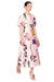 Wildflowers in vibrant purple, orange, and white dance across a soft pink canvas on this Caroline midi dress. The playful botanical print brings whimsical sophistication to an elegantly tailored silhouette featuring a round neckline, fitted waist, and graceful A-line skirt. Short sleeves and an invisible back zip closure complete the refined design, while full lining ensures comfort and polish. Perfect for elevated daytime occasions.