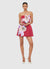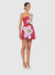 The fluidly painted graphic lilies on an oxblood red base are accented with splashes of pink and ochre, creating an artistic Matisse-like vibe. With a sweetheart neckline and boned bodice, this dress is a sophisticated and exclusive addition to your wardrobe.