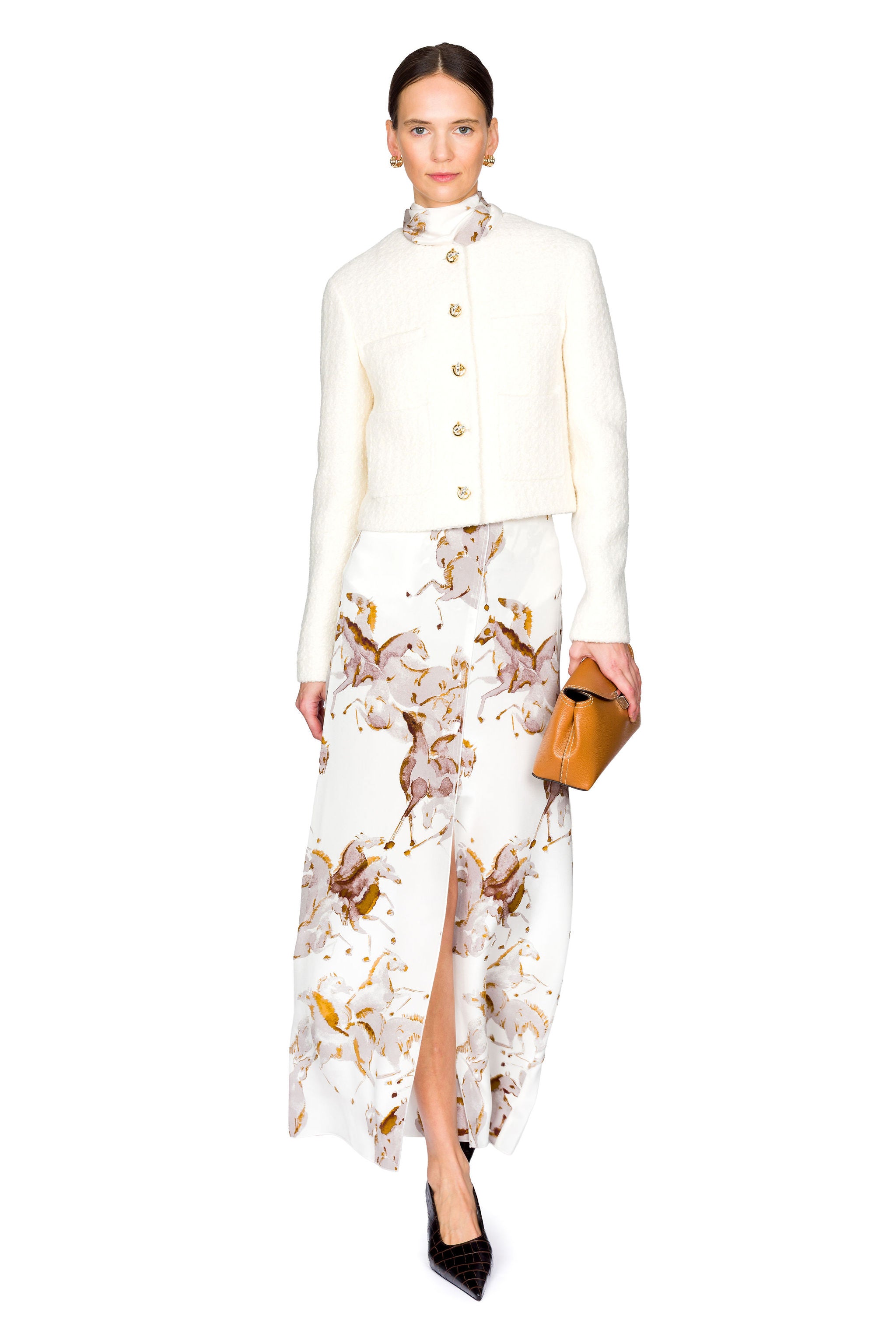 The Beanie Jacket embodies refined versatility for any occasion. Crafted from luxurious boucle fabric, it features distinctive two-tone metal knot buttons reminiscent of treasured heirloom jewelry. This sophisticated piece transitions effortlessly from daytime elegance to evening sophistication.