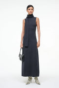 The Canal Midi Dress combines timeless elegance with versatile styling. This fitted sweater dress features a refined roll neck turtleneck and distinctive back seaming that creates a flattering silhouette. The detachable scarf adds dimension and allows you to customize your look for any occasion. Perfect for transitional seasons, this midi-length piece transitions effortlessly from day to evening wear.