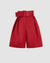 These Belted Wide Shorts in shiny Double Duchess Satin feature a high waist, wide legs, and a matching belt with a covered buckle. Finished in bold jamberry red with subtle back pockets, they create a sleek and polished look perfect for any time of day.
