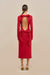 Elevate your wardrobe with the Boa Dress, a refined long sleeve midi silhouette that seamlessly blends elegance with modern design. This sophisticated piece features a flattering V neckline and slip-on construction for effortless styling. The standout open back cutout is beautifully framed by two fixed bow details, creating an alluring focal point that transitions seamlessly from day to evening. Perfect for those who appreciate understated luxury and timeless appeal.
