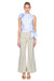 This contemporary shirting top transforms classic tailoring with refined feminine details. A gathered neckline creates soft volume at the shoulders, while an artfully knotted side tie adds sculptural interest and adjustable fit. Crafted with crisp shirting fabric, it bridges polished and relaxed aesthetics—equally at home layered under blazers or styled standalone for effortless sophistication that celebrates both structure and movement.