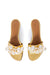 Effortless elegance meets coastal charm with these gold leather flat slide sandals. Adorned with lustrous pearl and delicate seashell embellishments along the strap, each pair captures a refined, beachy aesthetic. The smooth leather construction ensures comfort for all-day wear, while the understated flat sole provides a polished foundation for any warm-weather ensemble. Perfect for transitioning from poolside to dinner, these slides bring a touch of seaside sophistication to your wardrobe.