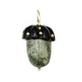 Hand-carved stone acorn pendant in obsidian and serpentine with 14K gold accents. A refined pendant that combines natural beauty with precious metal details.