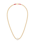 Elegant gold beaded chain necklace featuring a luminous solitaire pearl pendant. The delicate beaded design adds texture and sophistication, while the classic pearl creates a timeless focal point perfect for everyday wear or special occasions. Versatile enough to layer or wear alone, this piece effortlessly elevates any outfit with understated luxury and refined style.