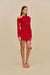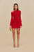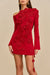 The Kaela Knit Dress showcases artisanal craftsmanship with hand-crocheted construction and dimensional floral appliqués that elevate its delicate aesthetic. This mini dress features an elegant off-the-shoulder neckline paired with long sleeves, creating a refined silhouette that balances romantic details with contemporary styling. The intricate 3D florals add textural depth and visual interest, making it an ideal choice for those seeking a statement piece that combines handmade quality with modern sophistication.