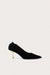 The Valentina Pump epitomizes timeless elegance with its luxurious black velvet upper and refined gold-toned stiletto heel. The pointed toe creates a gracefully elongated silhouette, while the elasticated back strap ensures a secure, comfortable fit throughout the day. A sophisticated choice for elevating any ensemble, from evening wear to polished professional occasions.