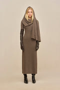 Elevate your winter wardrobe with the Natacha Dress, a refined cable knit midi that seamlessly blends luxury and versatility. Crafted from a sumptuous wool cashmere blend, this sophisticated piece features long sleeves and an ingenious built-in scarf that transitions effortlessly from a graceful neckline drape to a cozy hood. The midi silhouette offers timeless elegance, making it perfect for both refined occasions and elevated everyday wear.