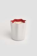 The "Fancy" Murano Glass Candle, is inspired by the playful yet imaginative Harlequin. The white and red-black color scheme embodies the complex character of this whimsical figure, evoking a sense of clever creativity and foolish charm.