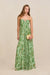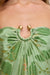 The Renay Dress captivates with its luxurious silk burnout fabric and a fitted bodice accented by gold-toned hardware at the center bust. This elegant detail harmonizes beautifully with the gown’s flowing full-length hem, creating a striking silhouette that exudes refined sophistication.