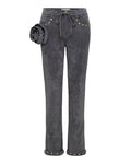 The Griff Pant exudes sophistication with its rich grey velvet fabric and refined gold stud accents at the pockets. A subtle rosette embellishment on the hip adds an elegant, distinctive detail, making these pants a perfect blend of classic style and contemporary charm.