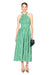 A charming blue-and-white seersucker gingham dress with a tied halter neckline and gathered bust. The knotted front detail and subtle cutout add visual interest, while the cinched waist and flowing skirt offer flattering movement and comfort. Lightweight and breathable, it's perfect for warm-weather occasions from day to evening.