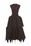 Elevate your wardrobe with this sophisticated sleeveless midi dress, designed for effortless elegance. The classic brown and reck check pattern brings timeless appeal, while the round neckline offers a refined silhouette. A voluminous full skirt with carefully placed panel appliques adds dimension and movement, creating a striking visual interest. Perfect for seasonal transitions and versatile enough for both casual outings and polished occasions, this piece combines understated luxury with thoughtful design details.