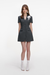 Embrace timeless elegance with this grey wool mini dress, a versatile piece that transitions seamlessly from office to evening. The fitted silhouette features structured shoulder pads and a front button closure for a polished, intentional look. A sculptural flower brooch provides a refined feminine touch—removable for styling flexibility. The mini hem pairs effortlessly with both flats and heels, while the minimal stretch fabric ensures a tailored fit that holds its shape throughout your day.