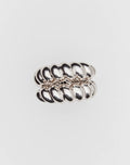 Discover the Rhonda Cuff, a striking accessory crafted from rhodium-plated brass that combines bold design with refined elegance. Its sculptural form makes a confident statement, while the hinged closure ensures easy and comfortable wear. Perfect for those who appreciate standout sophistication.