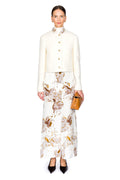 The Beanie Jacket embodies refined versatility for any occasion. Crafted from luxurious boucle fabric, it features distinctive two-tone metal knot buttons reminiscent of treasured heirloom jewelry. This sophisticated piece transitions effortlessly from daytime elegance to evening sophistication.