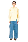 Crafted from premium pale yellow cotton poplin, this oversized button-down shirt features an elegant shaped split for contemporary silhouette. Made in Italy with meticulous attention to detail, it effortlessly transitions from casual weekends to refined layering. The relaxed fit and quality construction make it a versatile wardrobe essential that pairs beautifully with tailored trousers or denim alike.