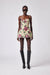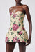 Elegant short dress featuring a romantic beige floral print. The corset-style bodice with sweetheart neckline creates a flattering, fitted silhouette, while the sleeveless cut offers a refined, versatile look perfect for special occasions or elevated everyday wear. A timeless piece that combines classic tailoring with feminine details.