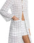 Effortless elegance in lightweight white check tweed. This full-length coat features three crochet button loops along the front chest, fabric-covered buttons, and a relaxed open body that drapes beautifully. The round neckline frames the face, while two front pockets add practicality. A subtle flare at the hem creates movement and polish. Pair with the matching Madeline Shorts for a coordinated look.