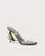 The Calisto Sandal combines art and elegance with its unique calla lily heel design. Transparent straps offer a modern, minimal look, while the flexible sole ensures comfortable wear. Standing at 3.5 inches, the sculptural heel creates a captivating silhouette for sophisticated occasions.