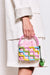 Elevate your everyday carry with the Candy Codette Small, a vibrant yet refined accessory that seamlessly blends playful color with polished sophistication. This beaded top handle purse features a striking palette of pink, yellow, green, and blue, each hue meticulously arranged for visual impact. The included light pink pouch insert keeps essentials organized, while the coordinating green bag charm adds a charming finishing touch. Perfect for those who appreciate bold design without compromising on elegance.