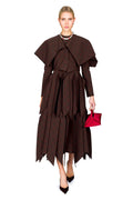 This cropped jacket commands attention with its exaggerated collar and brown-and-red check pattern. The oversized neckline creates a bold silhouette that elevates any ensemble, while the tailored length offers modern versatility. Perfect for layering over dresses or pairing with high-waisted bottoms, this piece balances statement-making design with refined elegance. A sophisticated choice for those who appreciate distinctive tailoring and timeless pattern play.