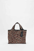 Elevate your everyday carry with this charming mini market tote. Crafted with leopard print embroidery, it strikes the perfect balance between playful style and refined elegance. The attached bag charm features a polished silver-tone metal logo plaque, adding a luxe finishing touch. Ideal for farmers market runs, quick errands, or as a chic accessory that transitions seamlessly from day to evening.