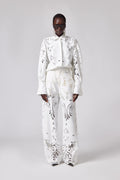 Elegant off-white trousers crafted from delicate broderie anglaise fabric. The intricate eyelet embroidery adds refined texture and visual interest, perfect for elevated everyday wear or special occasions. The breathable cotton construction ensures comfort while maintaining a polished, sophisticated silhouette.  Style with the matching Bustier Top