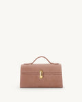 The Symmetry Pochette distills geometric elegance to its essence. Crafted in supple suede, this refined clutch balances minimalist design with purposeful details: our signature Symmetry turnlock, a single interior pocket for essentials, and a graceful leather handle. Perfect for those who appreciate understated luxury and clean lines.