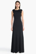 The Woolfe Dress embodies refined elegance with its elongated silhouette and graceful full-length hem. Delicate floral appliques frame the neckline, adding dimension and visual interest to the sculpted bodice. Fluid fabric movement creates a sophisticated drape that flatters the form while maintaining an understated, timeless aesthetic. Perfect for elevated occasions or refined everyday wear.